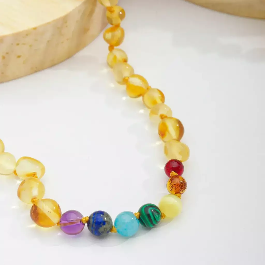 Colar de Âmbar Adultos Mel Polido e 7 Chakras
