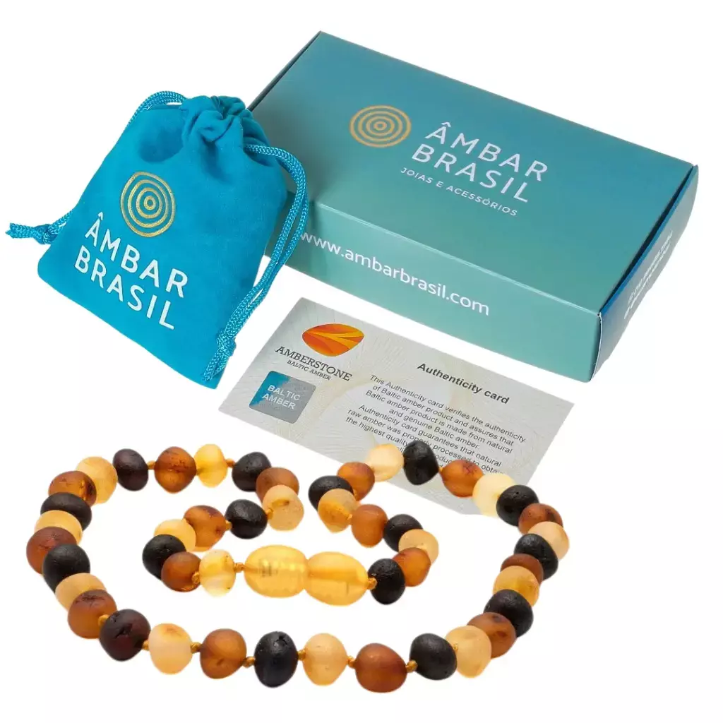 Além de deixar o seu bebê ainda mais lindo, o Colar de Âmbar tem propriedades terapêuticas naturais agindo como calmante, analgésico e antisséptico (anti-inflamatório), estimulando e melhorando o sistema imunológico, aliviando dores na fase de dentição, reduzindo processos inflamatórios e auxiliando na recuperação do corpo nos resfriados, gripes e febres, dentre outras propriedades.